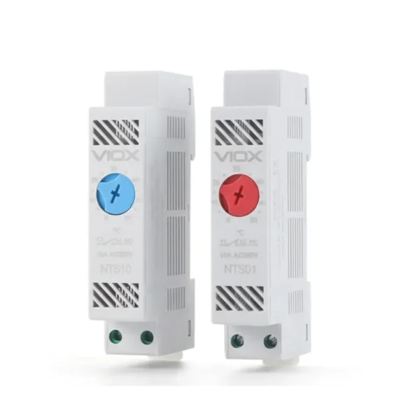 Siri termostat kabinet VIOX NTS01/NTS10 direka untuk pengawalaturan suhu dalam penutup elektrik, kabinet kawalan dan panel industri. Dengan perumah yang padat dan pemasangan rel DIN 35mm, rangkaian termostat ini membantu mengekalkan keadaan operasi yang stabil untuk komponen elektrik dalam persekitaran yang mencabar.