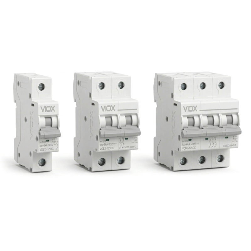 Pemutus litar mini DC VIOX VOB2-125DC direka untuk aplikasi perlindungan DC arus tinggi. Ia menampilkan reka bentuk tanpa kekutuban, menyokong sehingga DC1000V, dan menyediakan perlindungan beban lampau dan litar pintas dalam konfigurasi 1P hingga 4P.