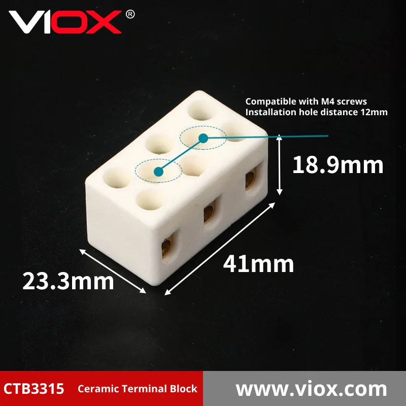 VIOX CTB3315 Ceramic Terminal Block offers a 3-in-3-out, 15A design for medium-current multi-circuit needs. With 750°C heat resistance, it’s ideal for industrial control systems and HVAC. Trust VIOX for durable, safe connections in challenging high-temperature industrial settings.